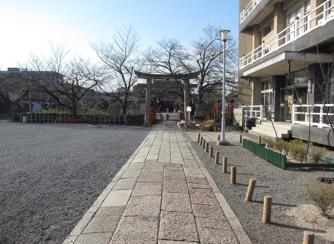 そこから左折して、ちょいとばかり歩くと、六孫王神社の入口に到着します。