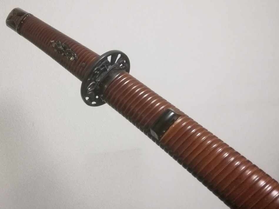 此方の小太刀は、茶色に染めた籐がグルグルと巻かれています。天然の筋目だったり、ちょっとした傷だったりが見えるのですが、それは長い時間をかけて〝味わい〟となっていくことでしょう。