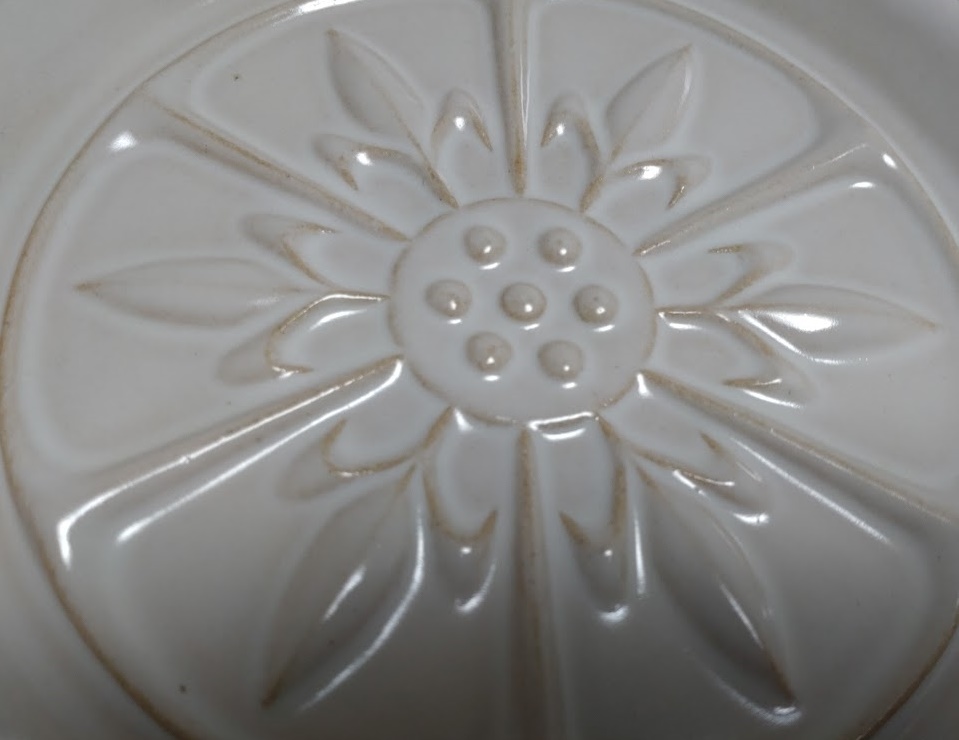 この「忍冬文小皿」は、聖徳太子(厩戸皇子)の斑鳩宮跡から出土した軒丸瓦をイメージしてつくられたものだといいます。