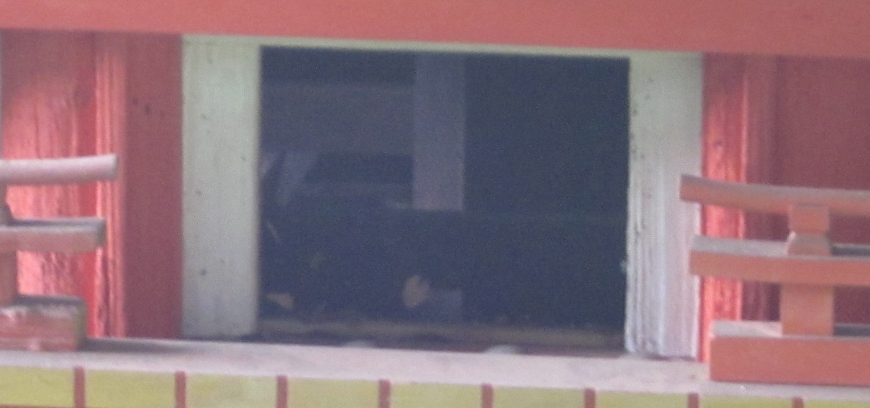 二階の中央の窓が開いており、微かではありますが内部の木組みの様子を見ることができました。