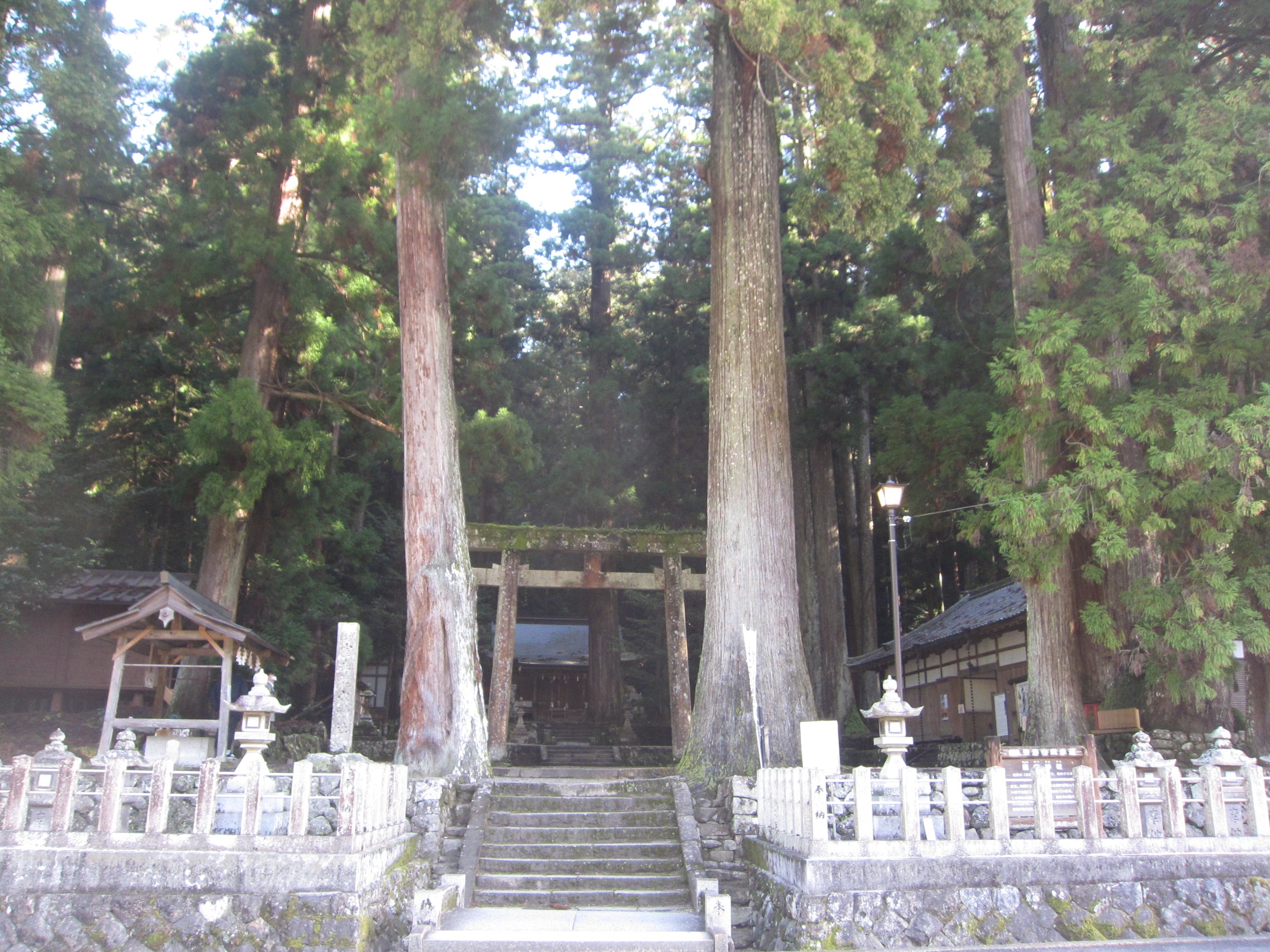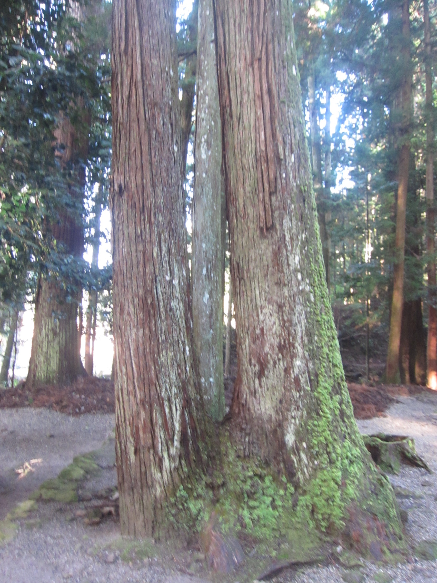 先に鳥居が見えていますが、この2本の神木が下界を仕切る標識でしょうな。