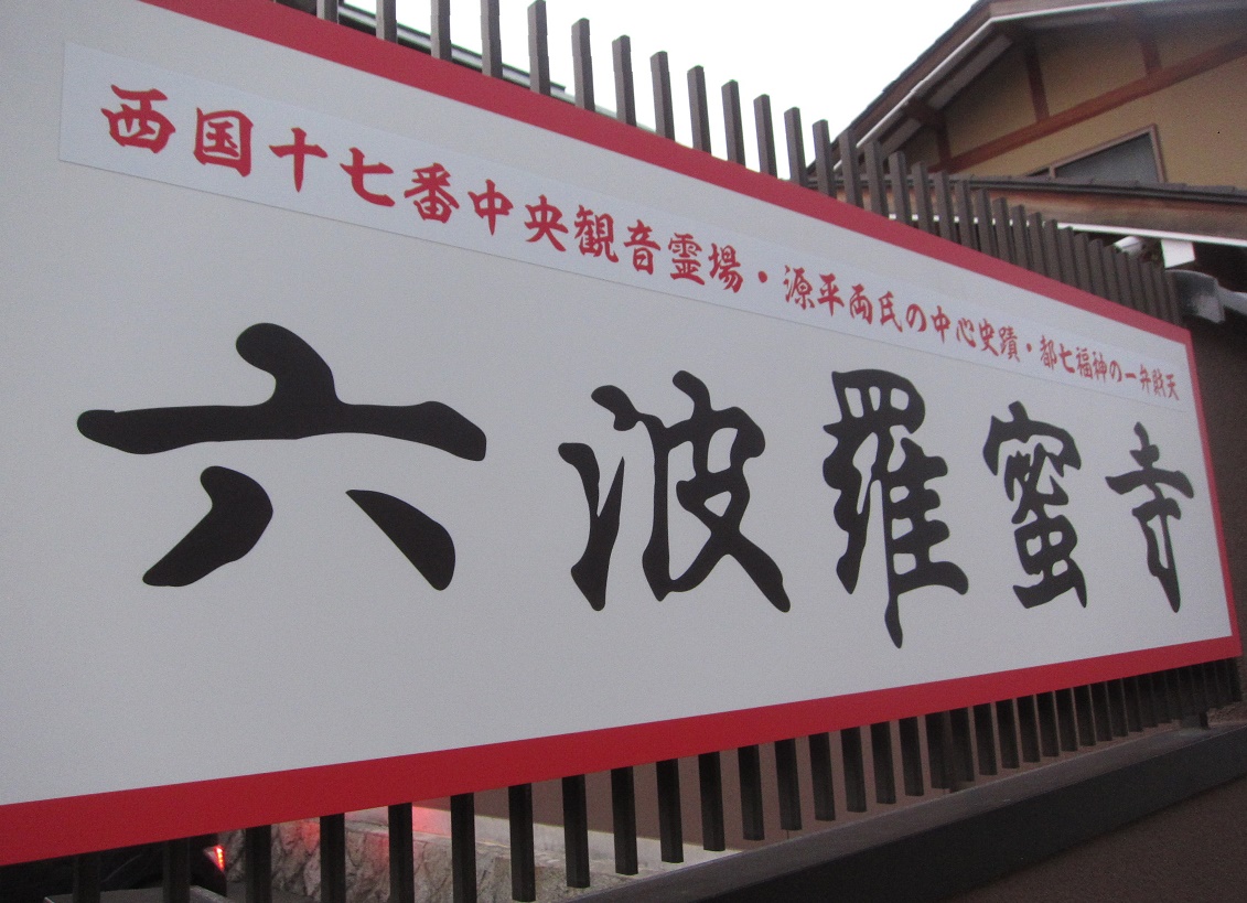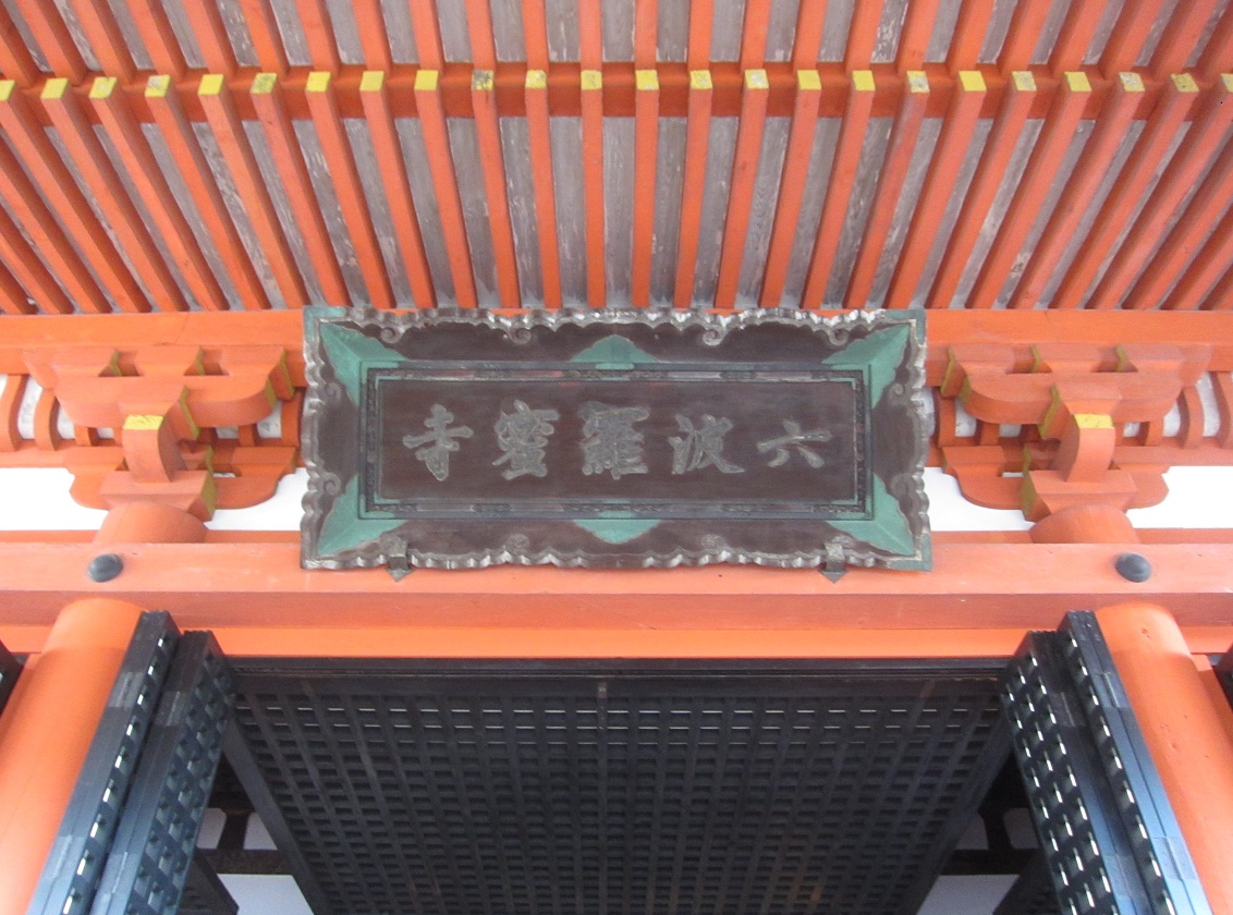 正面に掲げられている「六波羅蜜寺」の扁額に注目しています。