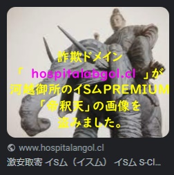 詐欺ドメイン「 hospitalangol.cl 」ってのが、河越御所のイSムPREMIUM「帝釈天」の画像を盗用しましたよ。売物ではないって言っているのに、大嘘こいています。