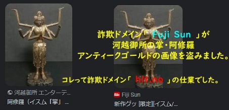 販売終了品である掌サイズの阿修羅アンティークゴールドを「サイズ交換OK」と断言していますからね(笑)。そのあとに「イスム」って言っていますから、「河越御所」サイトの情報を読んでいるんですよ・・・あっ、此奴(詐欺ドメイン「 hlt.no 」)は日本語が解らんのか・・・。