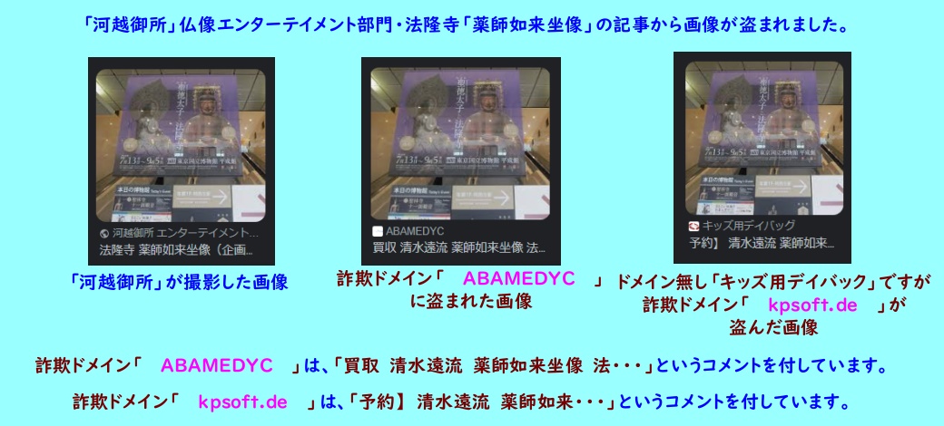ちょいと横道に逸れてしまいますが、「河越御所」の仏像エンターテイメント部門から「法隆寺 薬師如来坐像」の画像も盗まれていました。