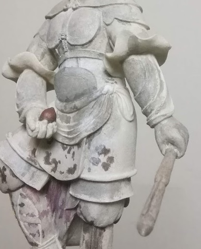 こうして部分拡大をしてみると、胡粉を用いた塑像の質感・風合い、そして面と形状によって差異が生じている残存色彩と経年による汚れ・損傷具合が見事に復元されています。