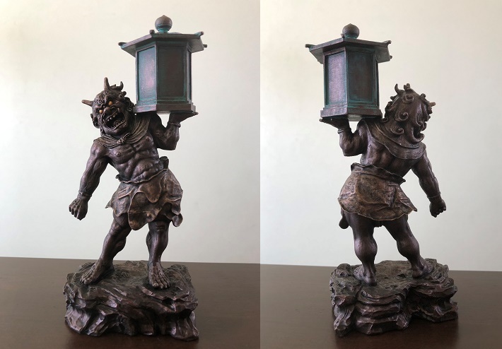 天灯鬼自体が赤銅中心なので、灯籠は緑青にして対比させているのです。