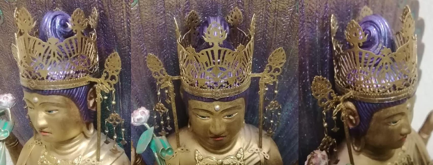 通常孔雀明王の宝冠+表情と見比べてみると、当然ですが特別彩色・孔雀明王の方が華やかさ満載です。