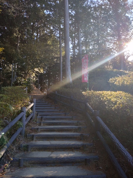 鳥居の手前は坂道になっていて、石段をのぼったところが神社境内=信長本陣跡ということでしょう。