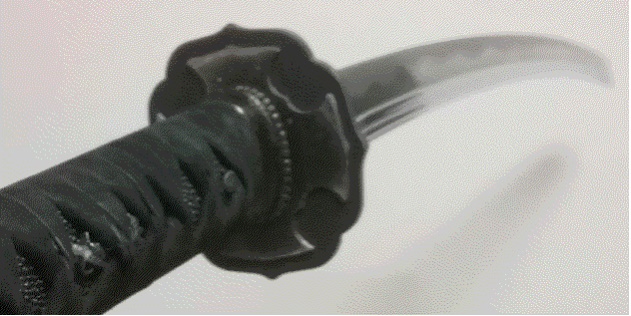 以前一緒に改造を依頼した「黒鴉」「八咫烏」は、牛本革(表)による柄巻変更でした。本革・表は艶があって美しいのですが、手汗で滑りやすくなる難点があります。