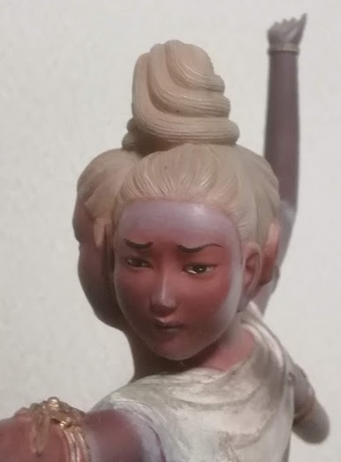 本物の天衣は剥落・退色が著しい状態なので、それを忠実に再現すると「商品」として美しくなくなってしまうので、程好きデフォルメが施されています。