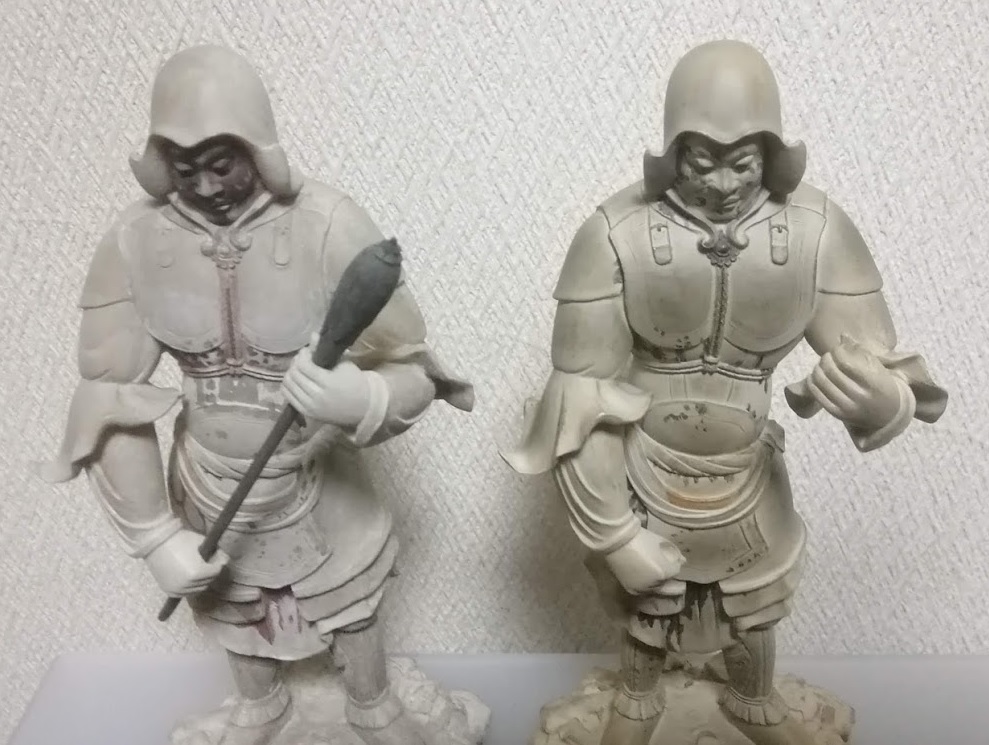 制作時の設定や技法によって彩色残存状況の彩色復元に相違が生じていますが、それは優劣ではありません。