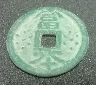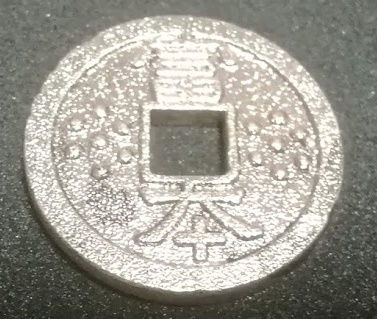 ちなみに昔の銭貨が方孔であるのは、そこに正方形の棒を通して何枚もの貨幣を固定し、側面の鋳型からはみ出した銅(バリ)を鑢で磨いて円形に整えるためです。