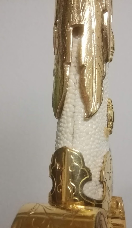 縁金具と鮫皮の合わせ目がちょっとズレていますが、巻鮫は難しいのでこの程度は誤差の範疇です。
